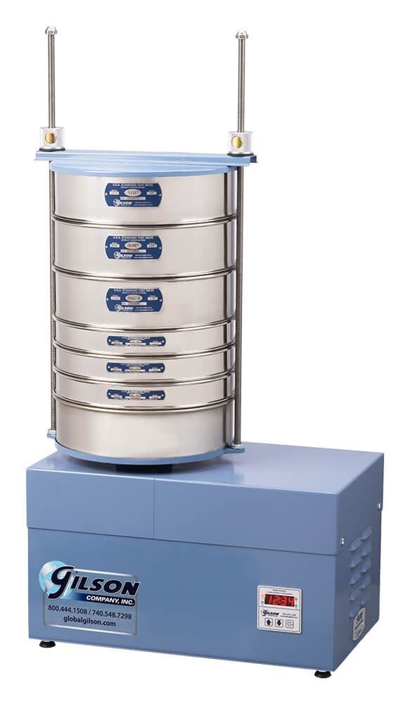 Gilson的内部平衡系统在操作过程中提高了稳定性,无需永久安装。振筛机安装在坚固的涂漆钢箱中,由1/3马力的电动机提供动力。