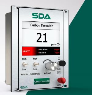 SDA CO监测仪提供来自快速响应、准确、长寿命数字电化学传感器的一氧化碳读数全彩显示。